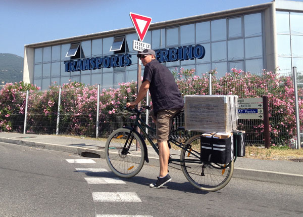 Le vélo est super agréable à conduire, on ne sent pas du tout le poids des colis derrière et on voit la vie différemment. Les regards se croisent, étonnements, sourires, encouragements, j’ai l’impression d’être sur le tour de France (bon d’accord, du Plan de Grasse :) )